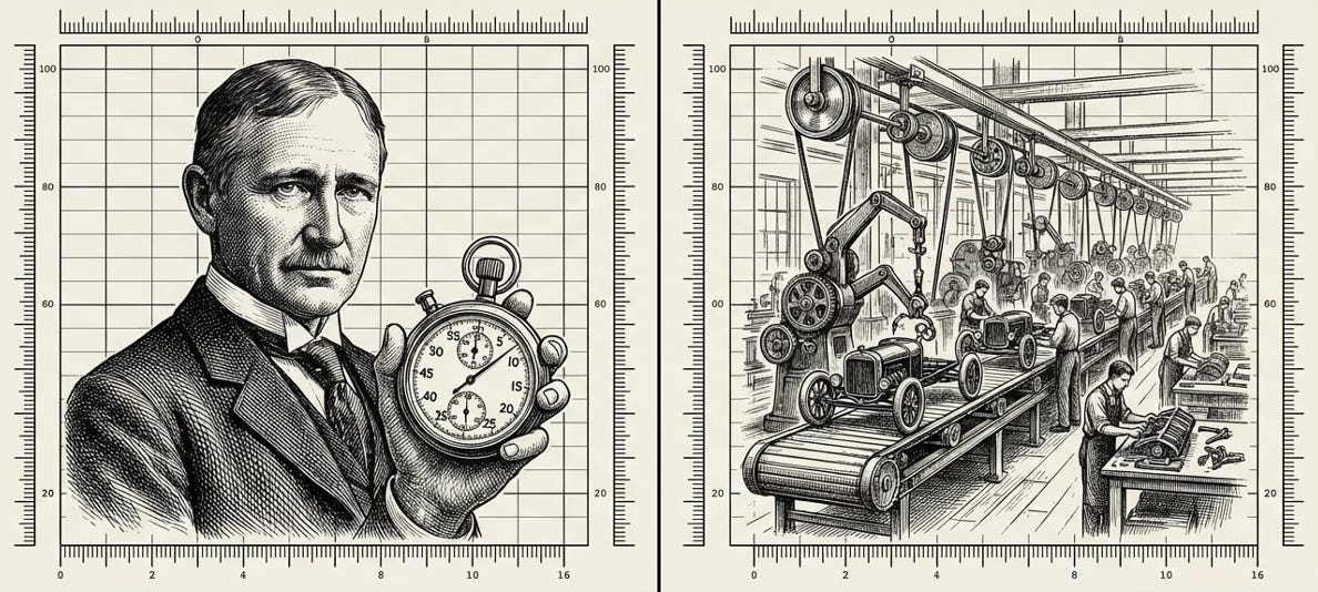 One prevailing school of thought, pioneered by Frederick Winslow Taylor, focused on the worker. He believed that if you broke a job down into its smallest constituent motions, and optimized each one, you could create a much more efficient worker. Taylor sought to atomize labor.